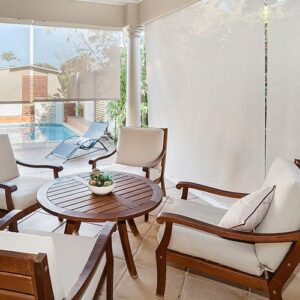 We recommend PVC for maximum waterproof protection or polyester with UV coating for balcony blinds Dubai plus bamboo for natural aesthetic appeal in covered patio areas only.